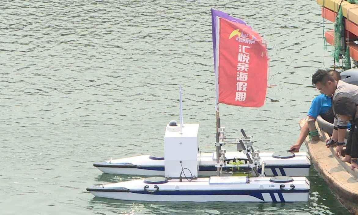 u$ x5 b8 i& F3 ]2021年8月11日,由哈尔滨工业大学(威海)与威海天帆智能科技有限公司共同研发的国内第一艘海洋牧场养殖观测无人船,在威海市德明海洋牧场进行海试并交付使用。