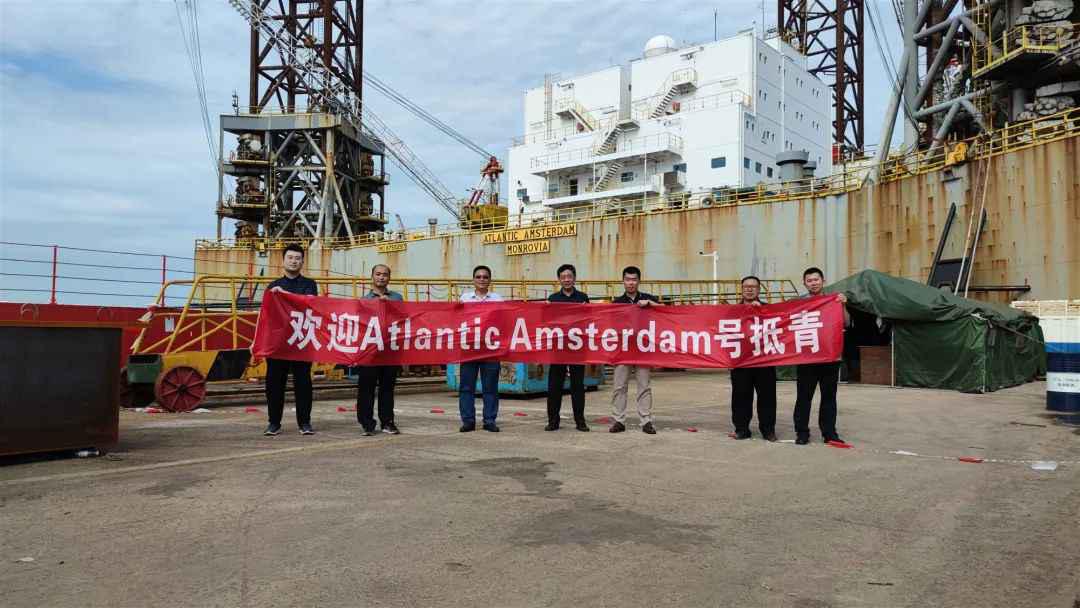 ?# t7 P, ^' Y8 q; ~1 p2 x6 F/ I9月22日,Atlantic Amsterdam平台(长74米,宽86米,深7.5 米,桩腿长度133.65米,发电能力为总共7000KW)运抵青岛北船进行升级改造,重点在生活保障、物资仓储、电力系统管控、网箱远程控制、信息交互系统、平台自身运行维护系统等方面进行改造,改造后的中央综合管理平台将为试验区提供支持保障、综合管控、科研实验三大功能。