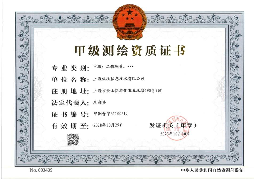 近日,中核五公司全资子公司上海纵核信息技术有限公司顺利通过上海市规划和自然资源局审查,测绘资质成功晋升为甲级,进一步完善了公司资质体系,增强生产经营实力。 ) v7 k7 E c h