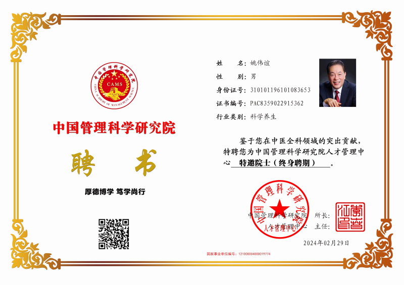 据相关媒体综合报道:一元复始,万象更始。近日著名爱国人士、国际战略研究专家、中联国兴书画院院长华国中,科学养生专家、国务院老龄委自然疗法专家组组长、人类健康大中华区主席姚伟谊共同荣获中国管理科学研究院特邀终身院士。7 @8 c' n9 ^0 d