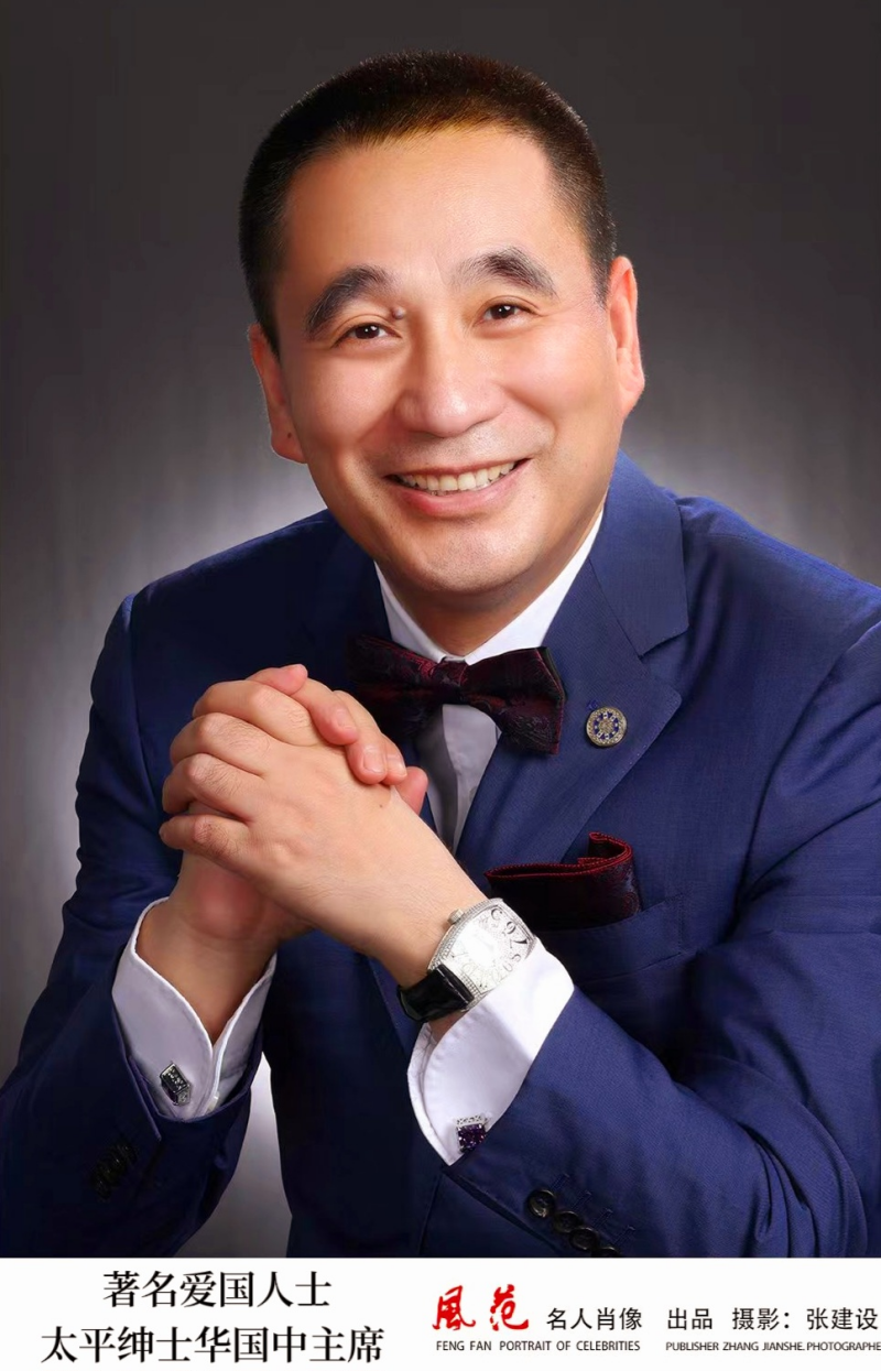 华国中、太平绅士,著名爱国人士,统一战线的优秀工作者,国际战略研究专家,对中华文化拓展与中华民族复兴、亚太形式与国家安全、欧美政治地理和台湾问题的研究、中华文化与振兴战略、国家战略和顶层设计、政治经济管理与金融科学创新、网络空间安全与国家安全战略。倡导筹建中国和平大学,协助成立中国易经大学并发起组建香港紫荆大学等。搭建和促进中国与欧美及东盟交流合作。对世界华人华侨团结友好交流和谐发展,团结一统,中华民族团结和平统一,为国家统战工作做出重要贡献。9 Z3 S& j6 y/ t2 _- `5 S