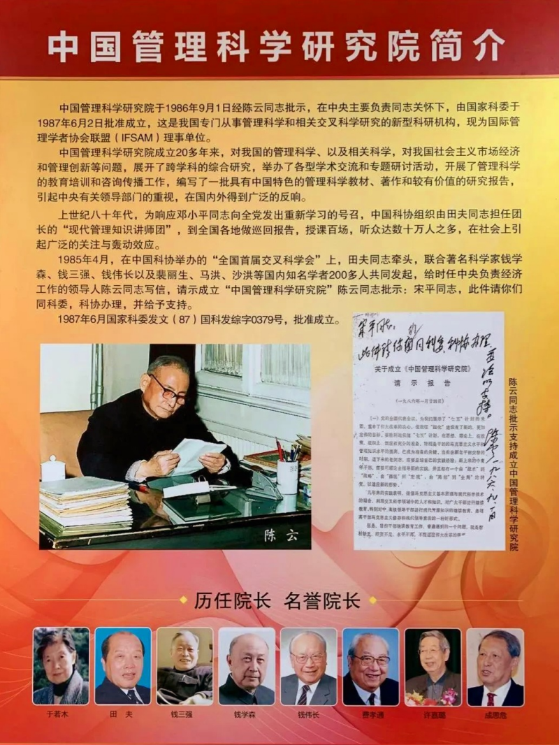 % S2 R; ?- V' }" w+ f+ j+ o中国管理科学研究院(简称中管院)由科学家钱学森、钱三强、钱伟长和裴丽生、马洪等200多位高级科研人员发起,于1986年9月1日经陈云同志批示,在宋平等中央主要领导同志的关怀和支持下,1987年6月2日,经中国政府批准成立的国家事业单位。这是中国第一家经国家批准的专门从事管理科学和相关交叉科学研究的新型科研咨询机构。为国际管理学者协会联盟(IFSAM)的理事单位。