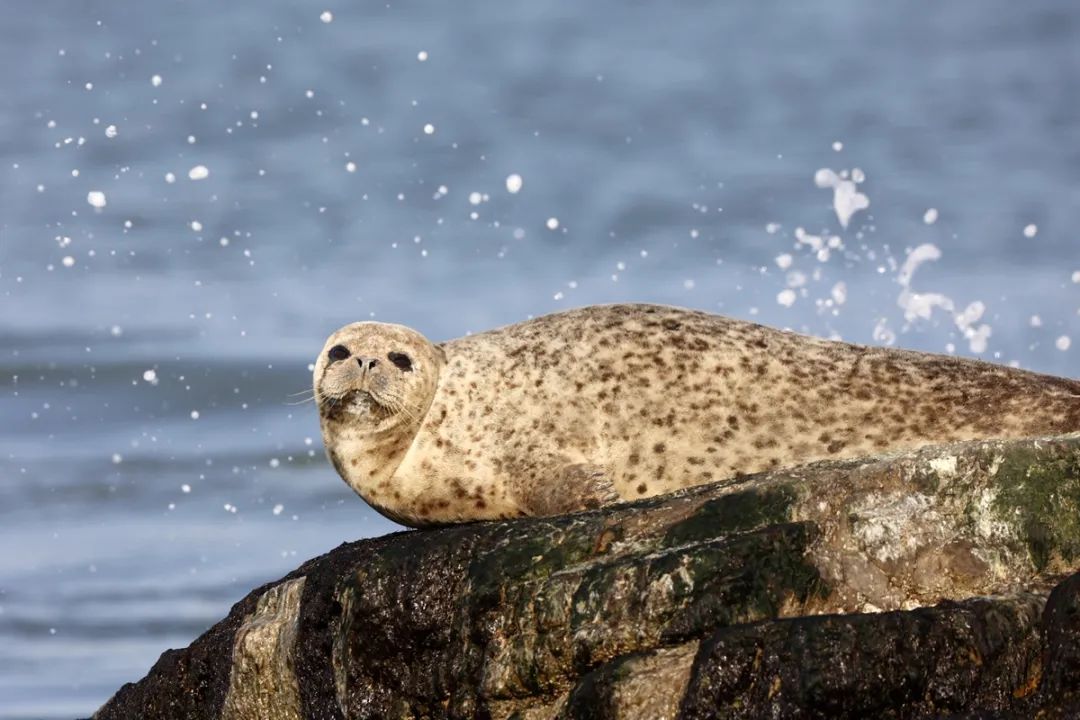 [color=rgba(0, 0, 0, 0.9)]长岛挡浪岛北侧海面上有几块神奇的礁盘,名为“海豹礁”,顾名思义,这里就是斑海豹的“海上乐园”。: f. K, V* e% i8 \' t/ R6 h