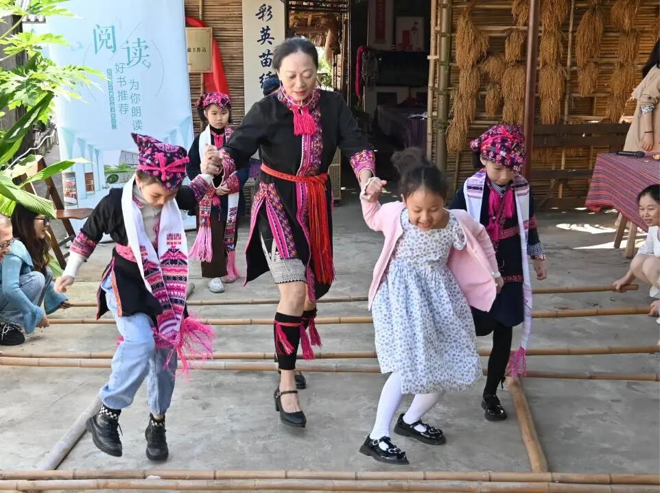 穿少数民族服饰、学做竹筒饭、学跳竹竿舞。
