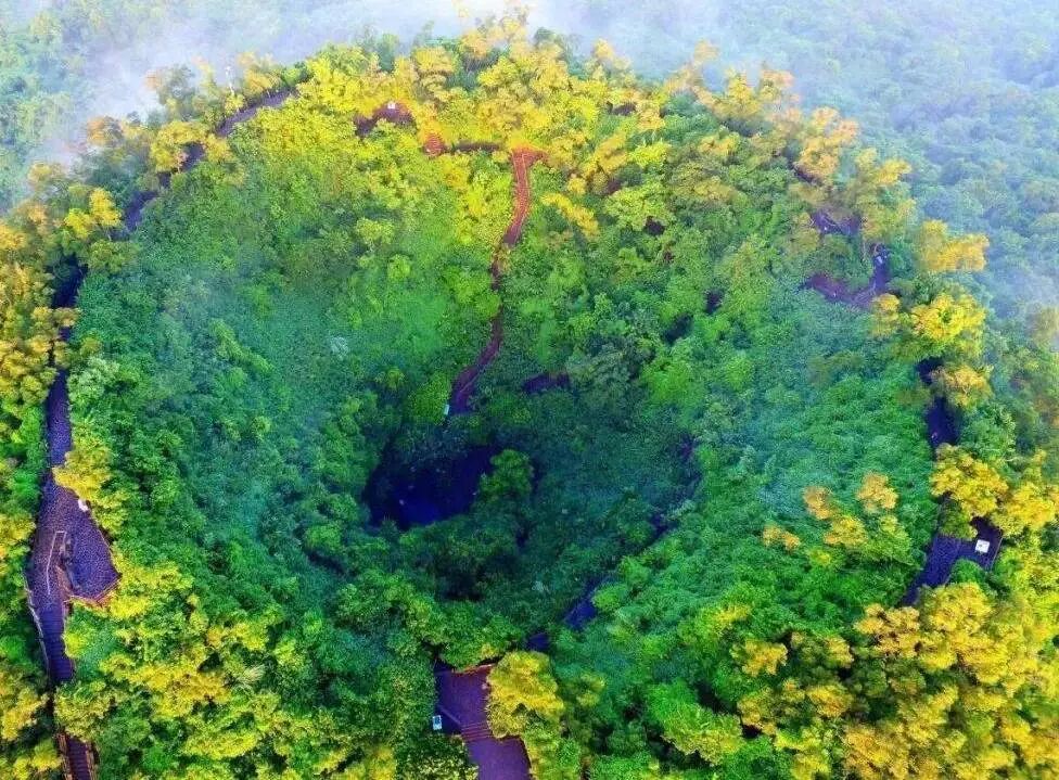 海口石山火山群是一群休眠火山,是一万多年前火山喷发形成的景观,含40多座火山和30多条火山熔岩隧道,堪称天然火山博物馆。 2 P* ], J% w/ D( z T