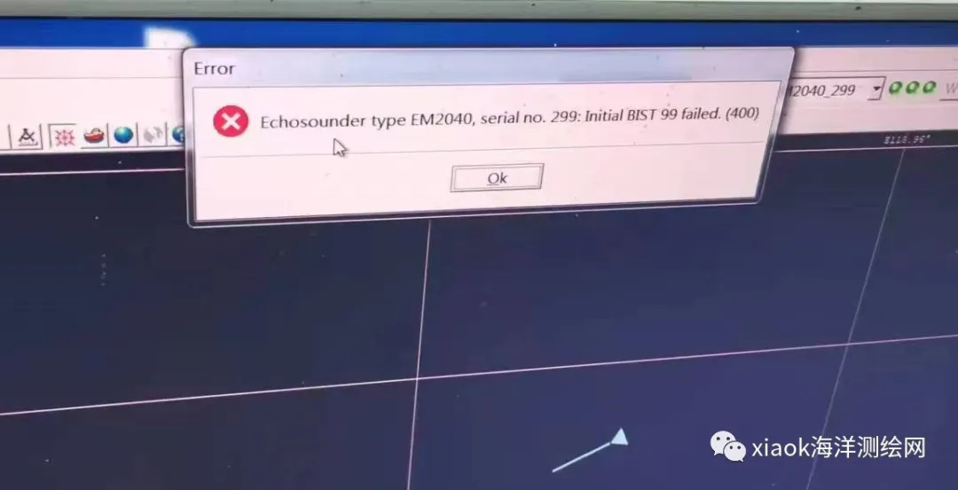 最近外业队说EM2040D其中1个接收阵(RX)找不到,报错的截图如下图,他们初步判断应该是RX线的问题,因为与其他线互换接口,其他线接口的灯正常亮,这根线接口灯不亮。