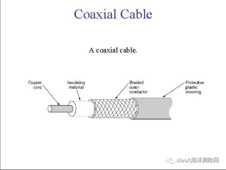 我们搜索了同轴缆的定义和图片,下图是P3 500的同轴缆。以前进口铠装缆的内部构造就是在P3 500同轴缆的外层增加一圈钢缆,比CTD绞车同轴缆多一层屏蔽层(braided outer conductor)和一层隔水层(protective plastic covering)。因为噪声的干扰,三芯线是不合适,最好的方案仍然是用同轴缆,为了能与Klein4000联通,同轴缆必须要有屏蔽层和隔水层,将屏蔽层而不是最外层的钢缆作为地线。