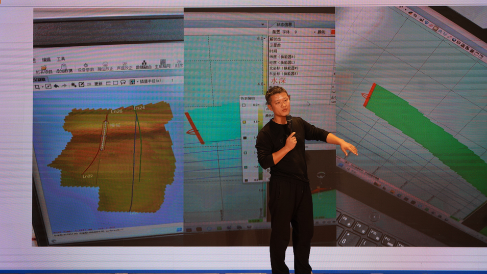 ▲新品发布 iBoat BS15智能无人测量船是中海达团队长时间研发与试验的成果,通过搭载中海达8140P小型化多波束测深系统,以及船尾加装双侧副翼推进器,可以做到多种航行模式轻松切换,实现内陆湖泊、河流、水库等各种复杂流域环境的水下地形地貌高精度测量。iSide 7000高分辨率动态聚焦多波束侧扫声呐采用了先进的动态数字自动聚焦技术,能够实现对海底地形的高分辨率探测,快速获取海底地形数据,为应急搜救、海事航道管理、海洋工程建设等领域提供重要的数据支持。新品揭牌仪式后,中海达集团海洋事业部产品方案部副总监秦海波带来中海达海洋产品发展报告,介绍了中海达整体海洋产品布局以及iBoat BS15智能无人测量船的研发背景、技术特点以及应用案例,让与会嘉宾对新品有了更深入的了解。