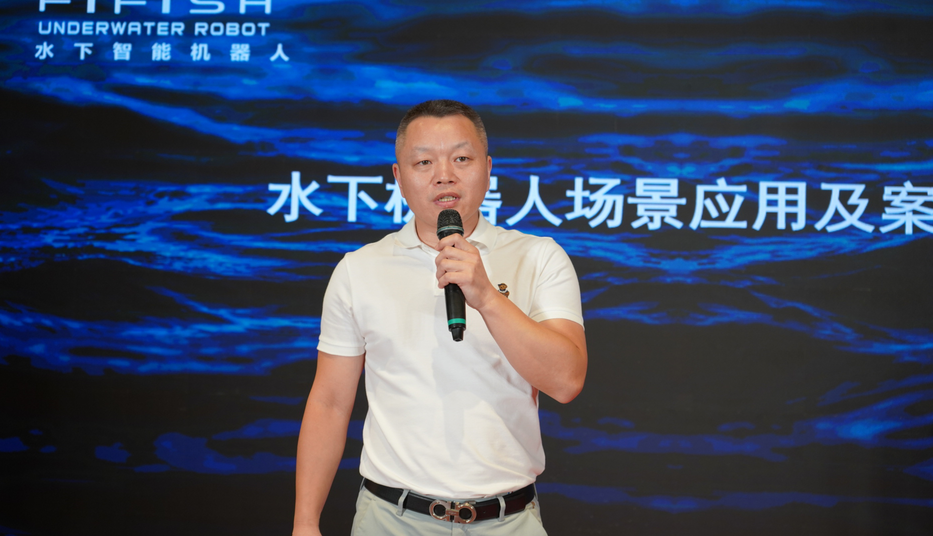 ▲深圳鳍源科技有限公司销售总监张先杰作《水下机器人的场景应用及案例分享》报告