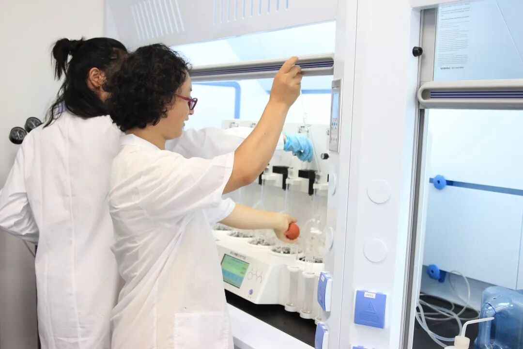 朝食之时,为了每一天的清晨都能有蓝天白云,新鲜的空气、水和食物,有机分析员刘尚晨和重金属分析员潘昊已经投入到忙碌的工作中,开始土壤样品及农作物样品的称量,这是要历时七八个小时样品消解工作的第一步,也是极为重要的一步。