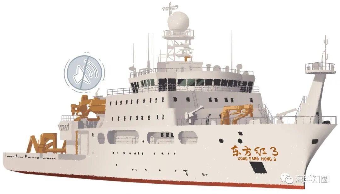作为一艘海洋综合科考船,东方红3号是中国最大的静音船,也是拥有最多定员人数和最大面积的作业甲板与实验室的海洋科考船。为了让其顺利获得国际最严格的水下噪声指标认证,中船集团708所的研究人员们破例将军用船只建造时才会使用的电磁兼容技术运用到了民用船只设计中,其目的只为减振降噪,这在保护船员健康,防止海洋生物节律破坏及监测数据的准确性等方面都有极大益处,用该船总设计师的话说,“当船行驶时,水下20米以外的鱼群都感觉不到”。在造船协议刚刚签订时,中国的水下噪声研究正处在起步阶段,东方红3号的正式交付与下水,体现了中国造船技术能力现代化的快速成长。