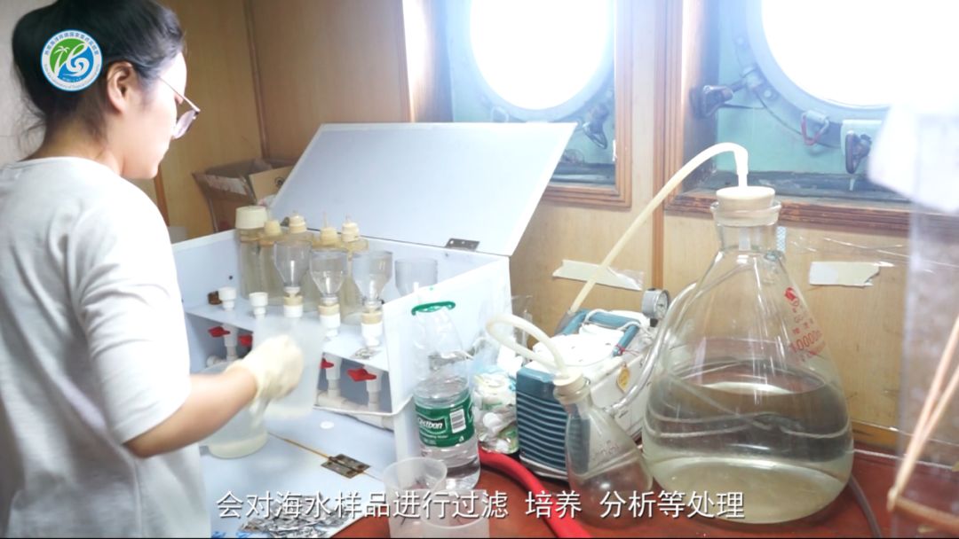 科学家们一般会优先测量海水中的溶解氧,以减小样品接触空气后造成的实验误差。接下来,会对海水样品进行过滤、培养、分析等处理,用于研究海洋初级生产力、海洋生态环境特征等。