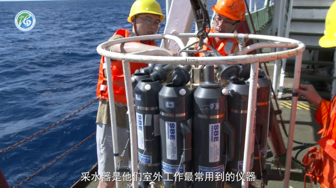 下面我们来介绍一下,海洋生态环境科学家如何开展工作。采水器是他们室外工作最常用到的仪器,主要包括采水架和采水瓶,它可以采集到海洋不同水层的水样,科学家在船甲板上从采水瓶里取出水样,以便进行下一步研究。