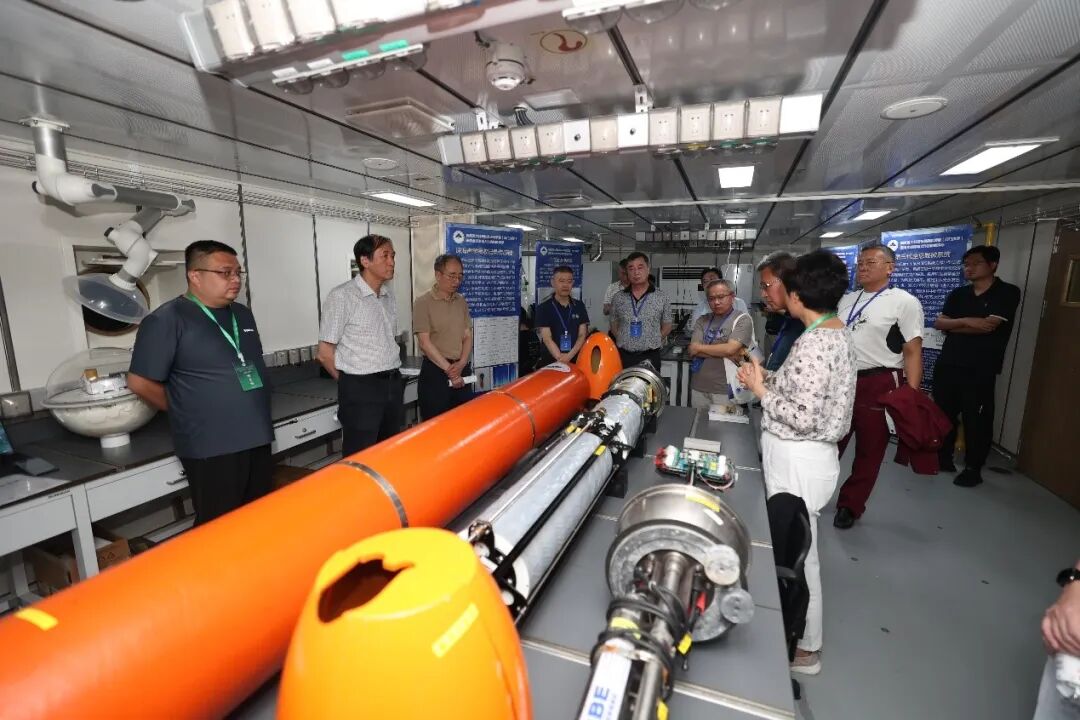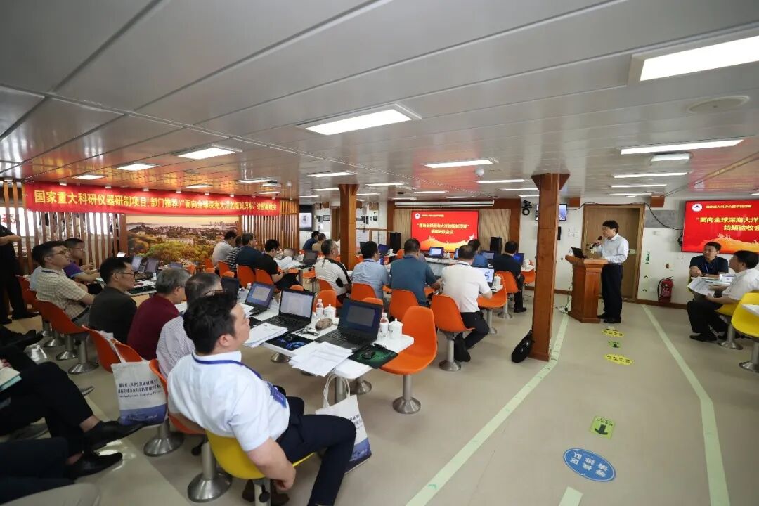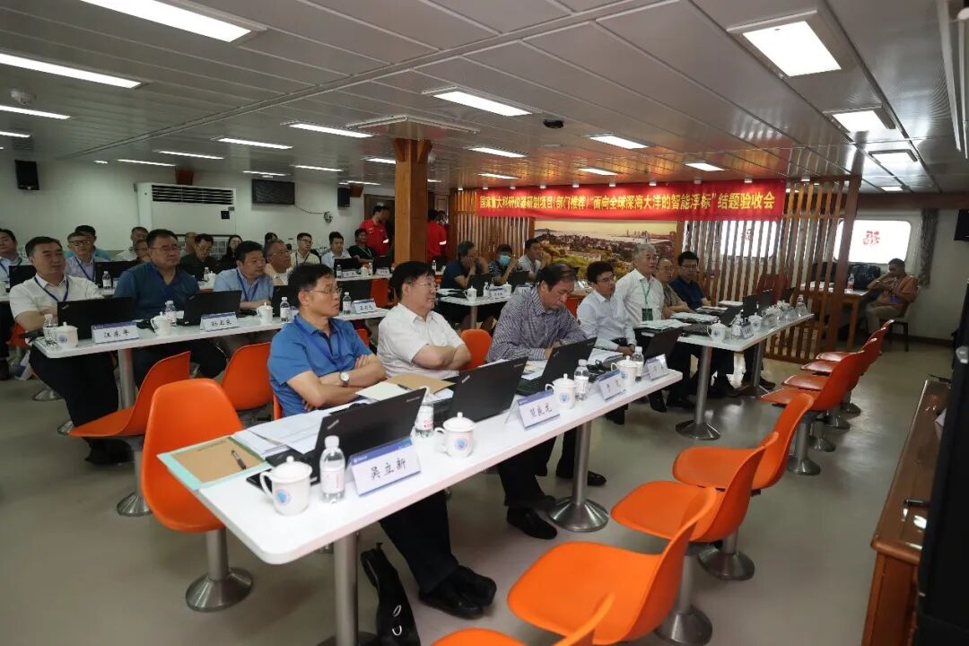 2023年7月12-13日,国家自然科学基金委员会(以下简称“基金委”)在新型深远海综合科考实习船“东方红3”船对我校吴立新院士牵头的国家重大科研仪器研制项目(部门推荐)“面向全球深海大洋的智能浮标”进行了现场结题验收。基金委党组成员、副主任兰玉杰、地球科学部常务副主任于晟、教育部科学技术与信息化司基础处副处长孙烨忱、验收专家组组长邓军院士等17位专家参加会议,中国海洋大学校长于志刚出席会议。 " c, \9 l% I: A4 ]