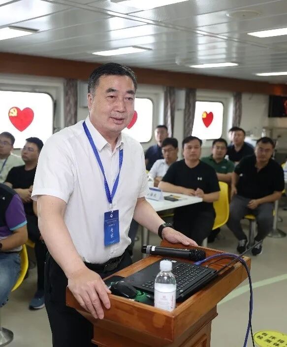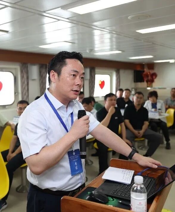 会议开始前学校船舶中心主任王毅向与会人员作了在船期间的安全提示,并组织与会人员参观考察了“东方红3”船。