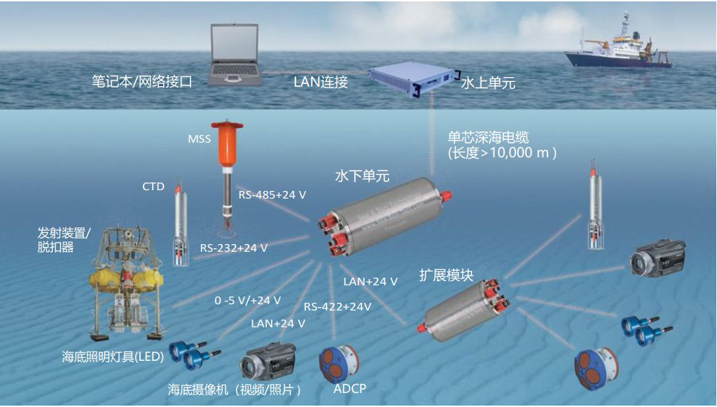 海洋环境监测数据以GPRS、CDMA、卫星、海底光纤网为主体通信方式组成海洋环境监测网,通过公用或专用Internet网实现了监测网络和信息网络的连接。在海洋环境监测网络中,以海底光纤或水声通信方式组网的海底监测技术是核心技术之一。世界各个海洋大国投入巨大予以发展海底监测网,比如日本提出ARENA计划,建造了由光缆连接跨越板块边界的海洋环境观测网络,应用于地震学和地球动力学研究、海洋环流研究、可燃冰监测、水热通量研究、生物与渔业研究、海洋哺乳动物研究、深海微生物研究等。美国启动NEPTUNE(“海王星”)计划环绕“胡安.德富卡”板块,铺设3000km光缆,进行海洋环境实时观测。美国和加拿大分别建设MARS观测站和VENUS观测站构成了加拿大的海底观测网(ONC)。欧洲根据全球环境监测与保护计划开展4D观测网建设,英、德、法等国建设的ESONET(欧洲海底观测网),对地球物理学、化学、生物化学、海洋学和渔业等提供长期战略性环境监测。 0 h8 U. N3 `2 u! K