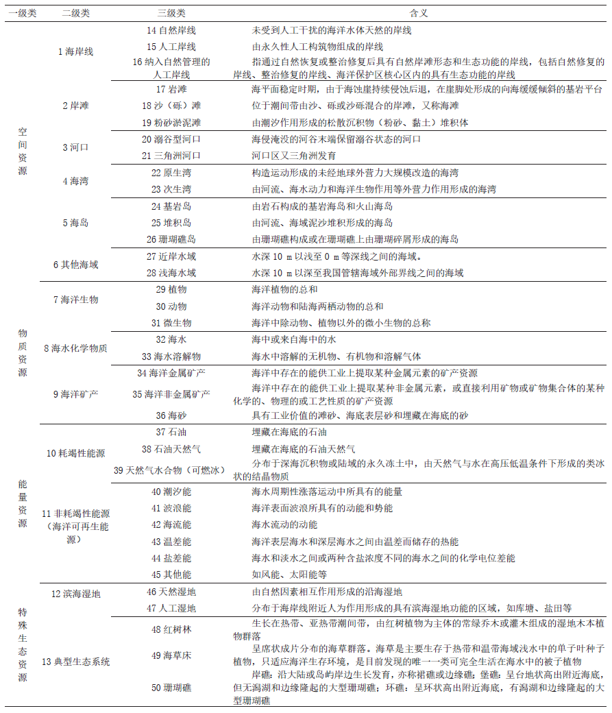 1 海洋资源分类体系