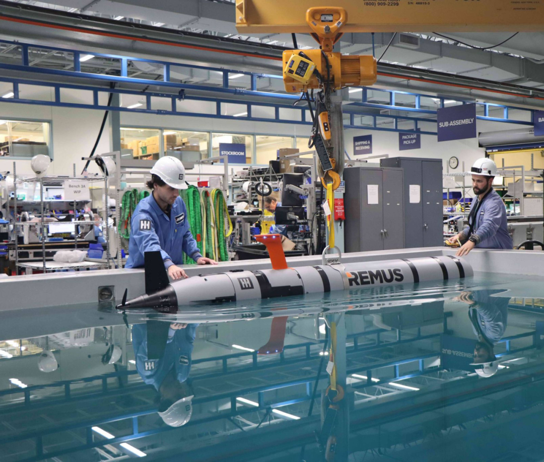 图2. HII的REMUS 620 UUV准备进行水池测试 ' |' t; M5 r: t3 \, C