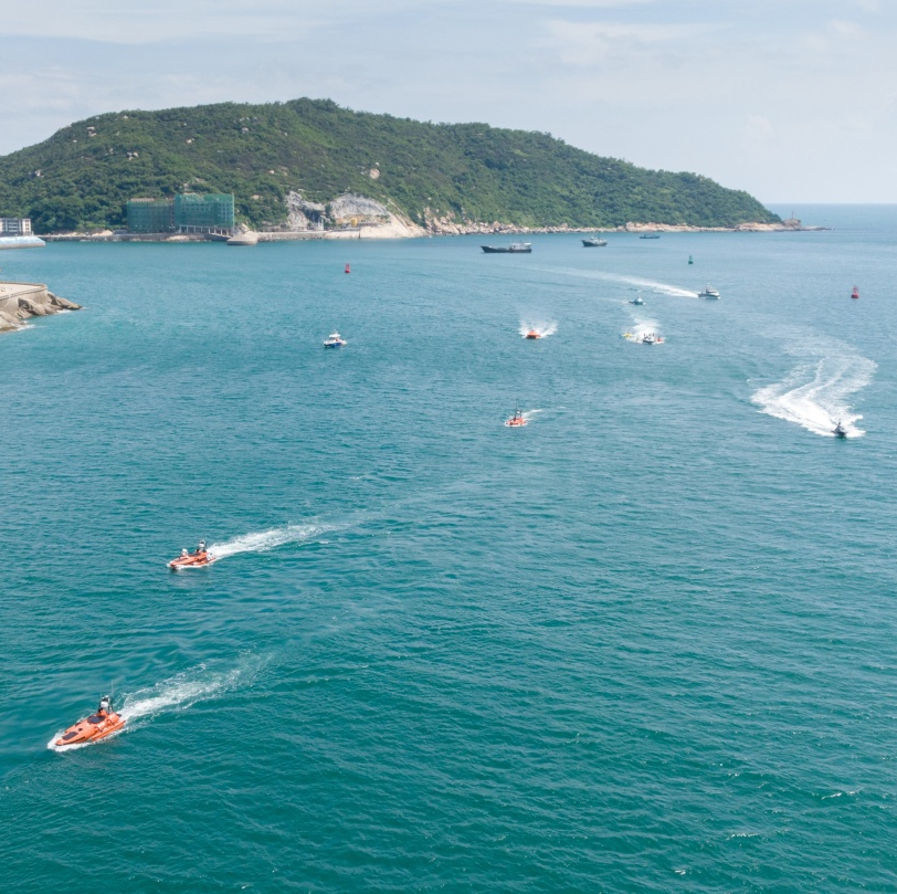 云洲智能无人船队在珠海万山无人船海上测试场组织了10艘异构无人艇的浅水地形集群组网协同测量演示验证,成功探索了无人船艇集群规模化测量施工的可行性。