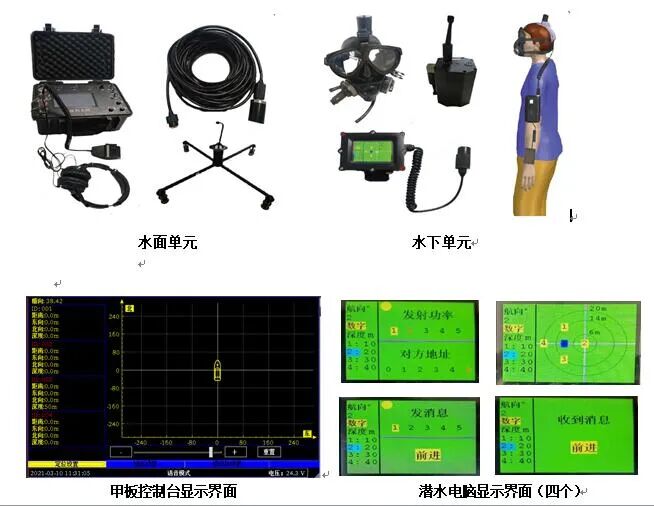 DTU-A3000潜水员语音通信及定位数字通信一体系统,集成水下语音通信+水下定位+水下数字通信功能于一体,可同时实现潜水员水下通话,水下精确定位及紧急短信发送等功能,潜水员佩戴水下电脑,简易的中文操作界面,可显示每个潜水员的位置和方位信息。定位功能不仅能让甲板单元指控人员实时准确掌握水下作业人员的所处方位及位置,同时下水作业的水下潜水员之间,也可实时掌握同伴的相对位置信息,潜水员所行进的路线,也可形成轨迹记录,方便任务结束后复盘。除可进行水下语音对讲外,系统还可增加短消息指令传输功能,以便于应对突发情况,全方位的保障水下作业人员的安全。 ) Y# i3 c) l# \8 o, v, b8 p2 e