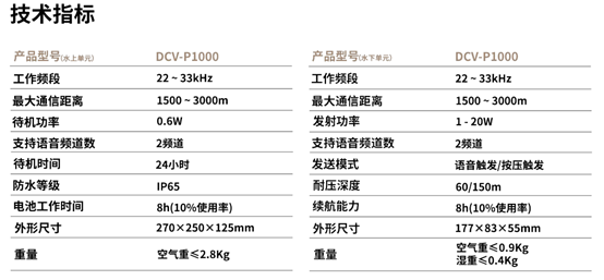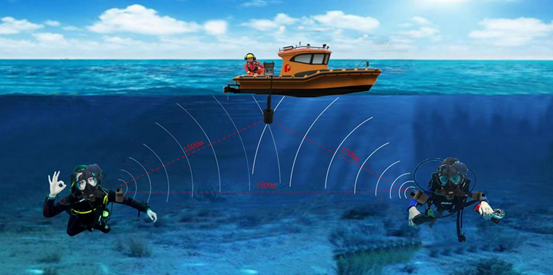 4 k* g$ T' N% ]! B c 公司经过近20年的技术积累,研发生产出DCV-P1000水下无线语音通信系统。此系统是基于声呐在水下传播信号技术,加上先进的软件算法,实现水下实时,无线,高清晰度的沟通。此设备在水下搜救打捞、水下监控和取证、水下安保和缉私等需要潜水员进行水下作业的领域有广泛的应用需求。 4 U3 K' C* t7 J6 i% {) ]' ?9 A