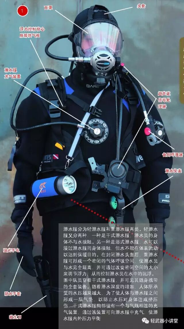 6 i3 _$ J* h$ z2 ^! \$ D 全身挂满各种潜水装备的“蛙人”充满神秘,这些装备具体是什 么?有哪些用途?下面就让我们一起来揭秘——