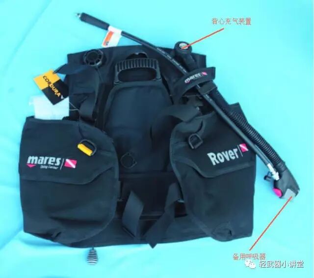 8 r+ g0 p! W/ z. t8 v9 q! I: P1 v; q 浮力控制背心,是潜水员在水中控制浮力的装备,由一个气囊构成,潜水员可通过控制该背心的充气和泄气,借以控制在水中浮力的大小。背心的肩部连接着背心充气装置和备用呼吸器,背后和肩部均设有泄气阀,方便潜水员控制。另外还可以选择装配重带或配重块,来帮助潜水人员潜入水中 $ \( [' d% C: k! C