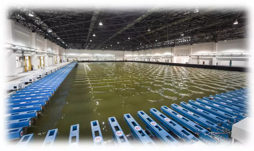 长70米,宽40米,深1.5米,最大试验水深1m,最大流速1.25m/s,最大潮差12cm,波周期范围为0.3~5.0s,波高范围为0.03~0.30m。主要由潮汐模拟设备、潮流模拟设备、泥沙动力学设备、移动式造波系统、中央监控系统等组成。 ; d$ x6 z: Q8 ]1 x, ]% L