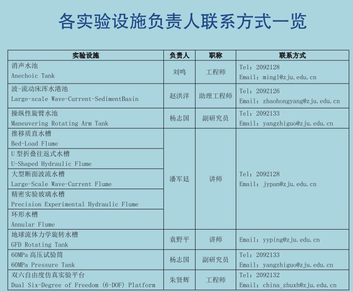 六槽:推移质直水槽、U型折叠往返式水槽、大型断面波流水槽、环形水槽、精密实验玻璃水槽、地球流体力学旋转水槽 / e, V/ c) L/ S8 t% a2 V