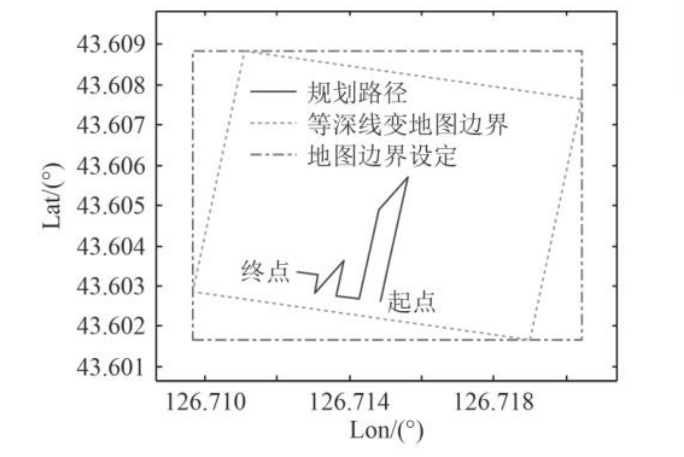 8 ]: ?7 f' b) S9 i 此外,在出现危险状况时,如突然进入测量区域的非合作船舶、水深变浅等,伴随测量地图的变化,进行路径重规划工作,为防止再次将已完成测量的区域作为规划区域,在进行测量路径重规划时,将历史形式区域神经元活性值置-1,以保证测量工作的高效性。