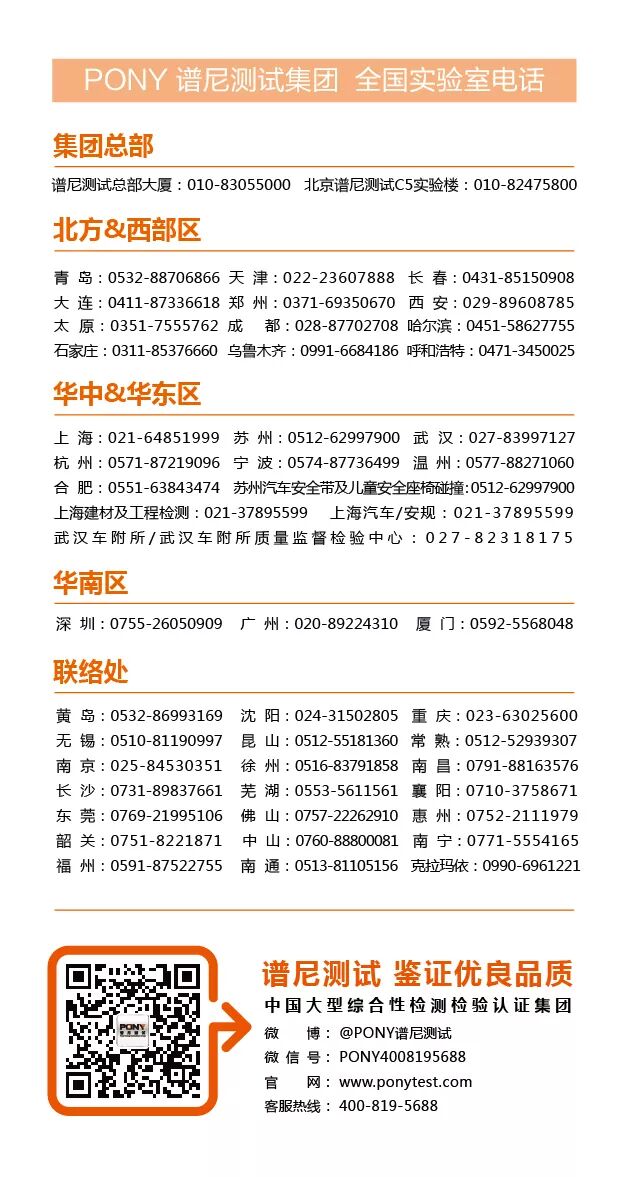 如您有相关检测需求或咨询需求,请拨打集团全国服务热线400-819-5688,或登录集团网站www.ponytest.com查询。 0 x9 `+ x. `" S& z1 |
