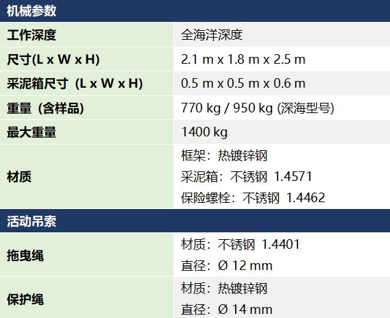 箱式采泥器主要用于海洋非扰动底质样品的大体积采样,可确保采集的样品没有遭受外力破坏,保持比较完整的状态,适合于进行化学样品尤其是生物样品的分析。通过绞车释放采泥器,插入底泥;采样时,采泥器的顶部保持打开状态,让水自由流过,这样防止压力增大引起沉积物和水体界面被搅动;采样器沉放到海底达到最大深度时,自动机械装置将释放挖铲,使其处于关闭状态;当挖铲位于垂直位置时,采泥箱底部关闭,采集到的样品保存在采泥箱中;当我们从海底升起采泥器时,采泥器的顶部将关闭 ,并通过一个带有软橡胶盖的绞翼密封。Oktopus箱式采泥器Box Corer 2500采用高强度不锈钢,经久耐用,而且操作非常方便。 + q% V; w- U5 V$ o7 w8 J