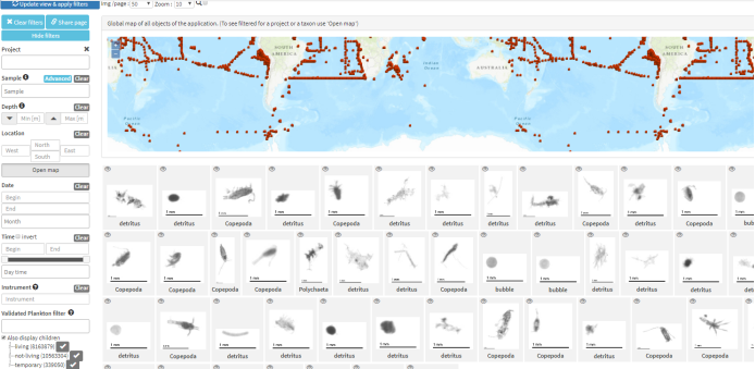 图4 UVP6-LP布放在载体上 将UVP6-LP拍摄得到的浮游动物图片进行处理后上传到EcoTaxa网站,可以利用网站上已有的库或自己已创建的库对图片进行自动鉴定、分类。同时,也可以根据筛选条件绘制相应的颗粒物粒径谱等。此外,用户也可以在网站上对自己感兴趣的区域、项目进行搜索浏览。
