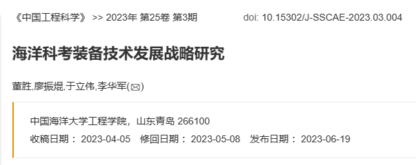 [5] 宋宪仓 , 杜君峰 , 王树青 , 等 . 海洋科学装备研究进展与发展建议 [J]. 中国工程科学 , 2020 , 22 6 : 76 ‒ 83 .