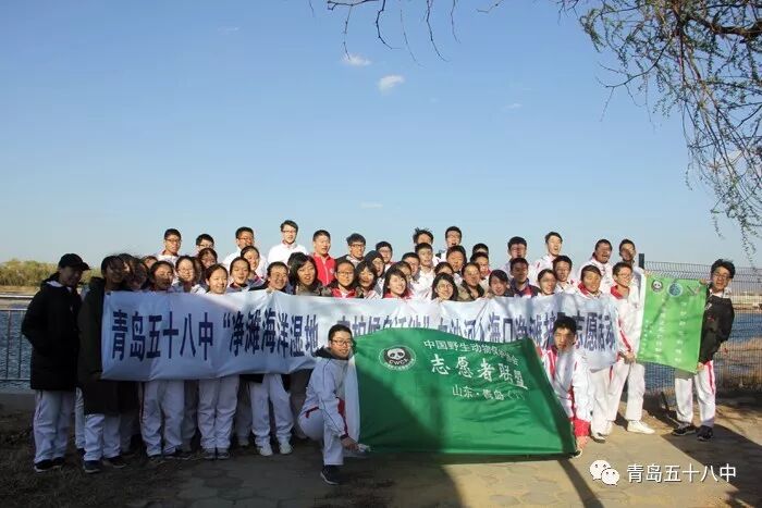 3月30日,青岛五十八中的师生志愿者来到胶州湾白沙河入海口,开展了生态研学和“净滩海洋湿地,守护候鸟迁徙”白沙河入海口净滩护飞志愿活动,做好环保宣传。