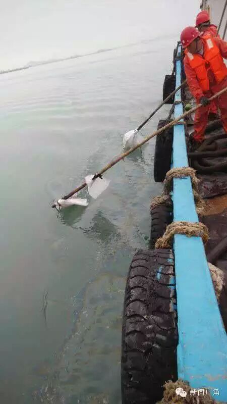 S3 u% v% m( i% F" S: y* } 发现油污后,当地海洋与渔业部门、环保部门以及泉港海事处正密切监测该海域情况,泉港海事处还联系了专业公司对油污进行清理。 , E! B) [5 Y: J( n3 ^- O! Q