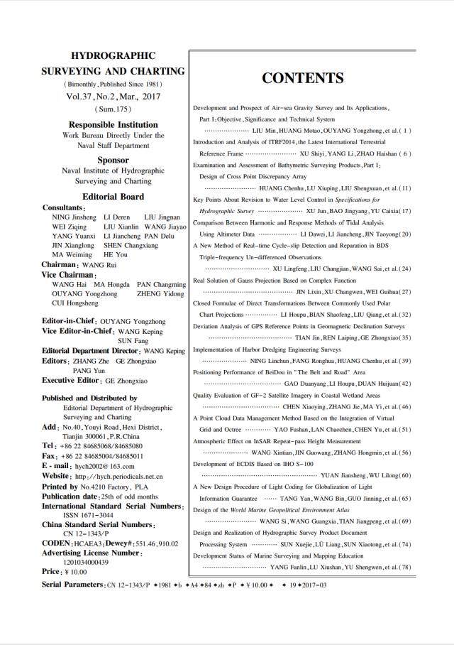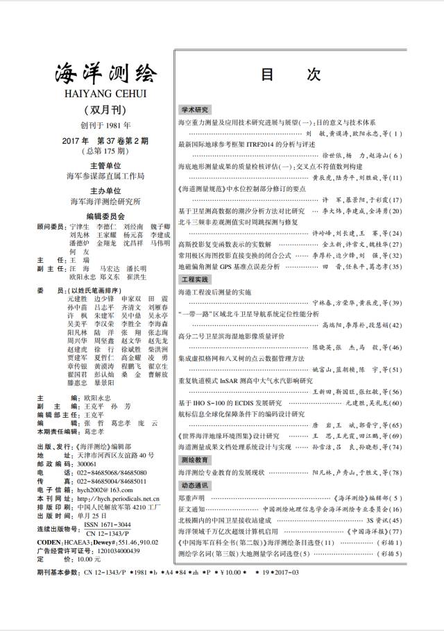 3 f* P+ g# ~8 J0 ^ `# o4 I4 r 《海洋测绘》2017年第1期