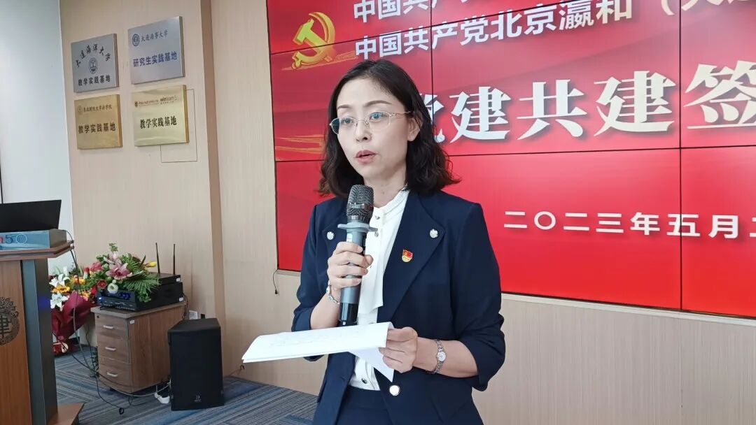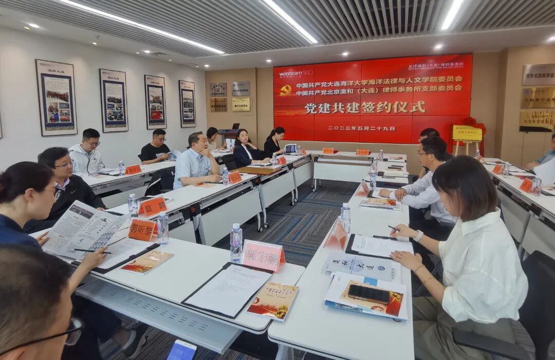 北京瀛和总所党总支副书记李东祥专门发来视频致辞。他指出,瀛和是在首都北京律所林立的地方异军突起的新秀,瀛和的党建工作守正创新,与律所同步发展,构建了红色引擎、绿色动力、四轮驱动的管理系统。瀛和把党建与业务结合、与行业结合、与公益结合,着力实现组织“领航”、支部“领路”、党员“领头”,激活团队活力的新模式。他希望瀛和大连通过本次共建活动,让人才交流相互奔赴,让法律业务服务相互奔赴,让各项工作都能互动起来,北京瀛和总所愿作大家合作共赢的坚强后盾,共同助力大学与律所开启法律需求的广阔市场。 6 c: e5 j: T7 Z8 |: ~% f. |& |# ~