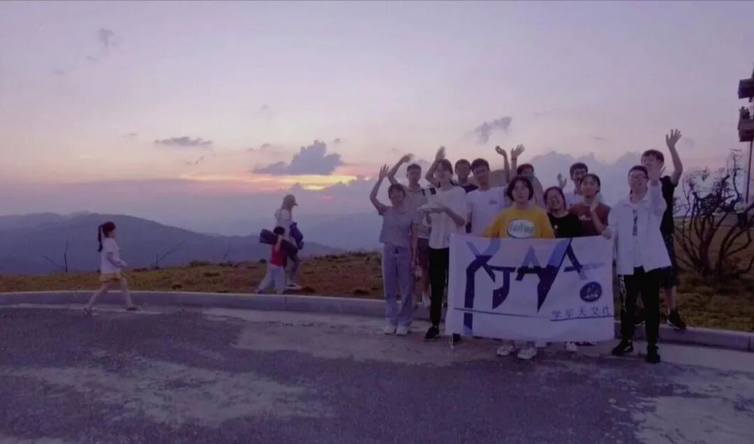 下午两点半,社员们在学校集合整理完毕,乘车踏上了前往牵牛岗的追星之旅。经过漫长颠簸,在山脚下做简单修整后,社员们向山顶进发!一长段盘山公路后终于到达“光明顶”,环顾四周,群山低伏,确实是一个极好的观星点。