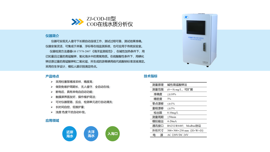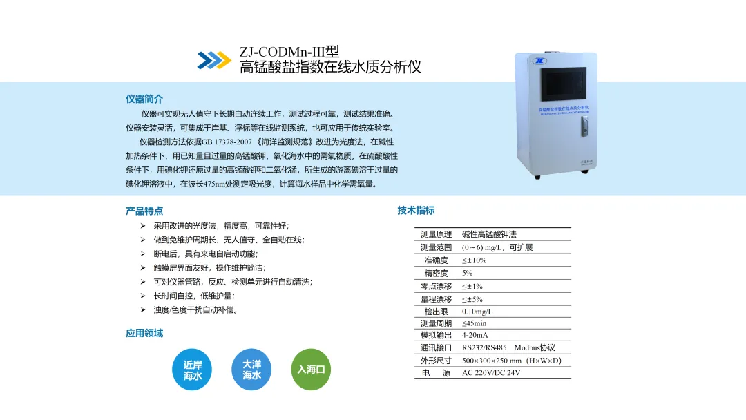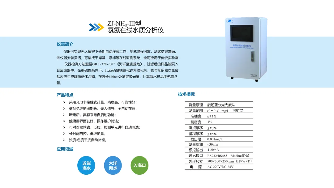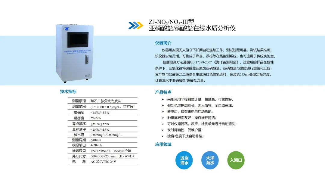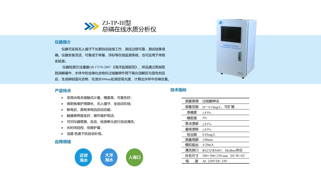 本次展会海域海岛环境科技研究院将会展示一套在线监测系统(包括COD/高锰酸盐/氨氮/磷酸盐/硅酸盐/总磷/亚硝酸盐/总氮在线水质分析仪)。以下为设备信息。