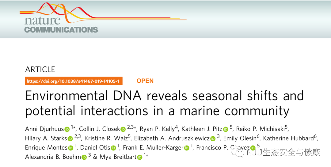 8 v! ^9 `. M5 j4 I. a, D! R 【论文题目】环境DNA揭示海洋生物群落季节性变化与潜在相互作用(“Environmental DNA revealsseasonal shifts and potential interactions in a marine community”)