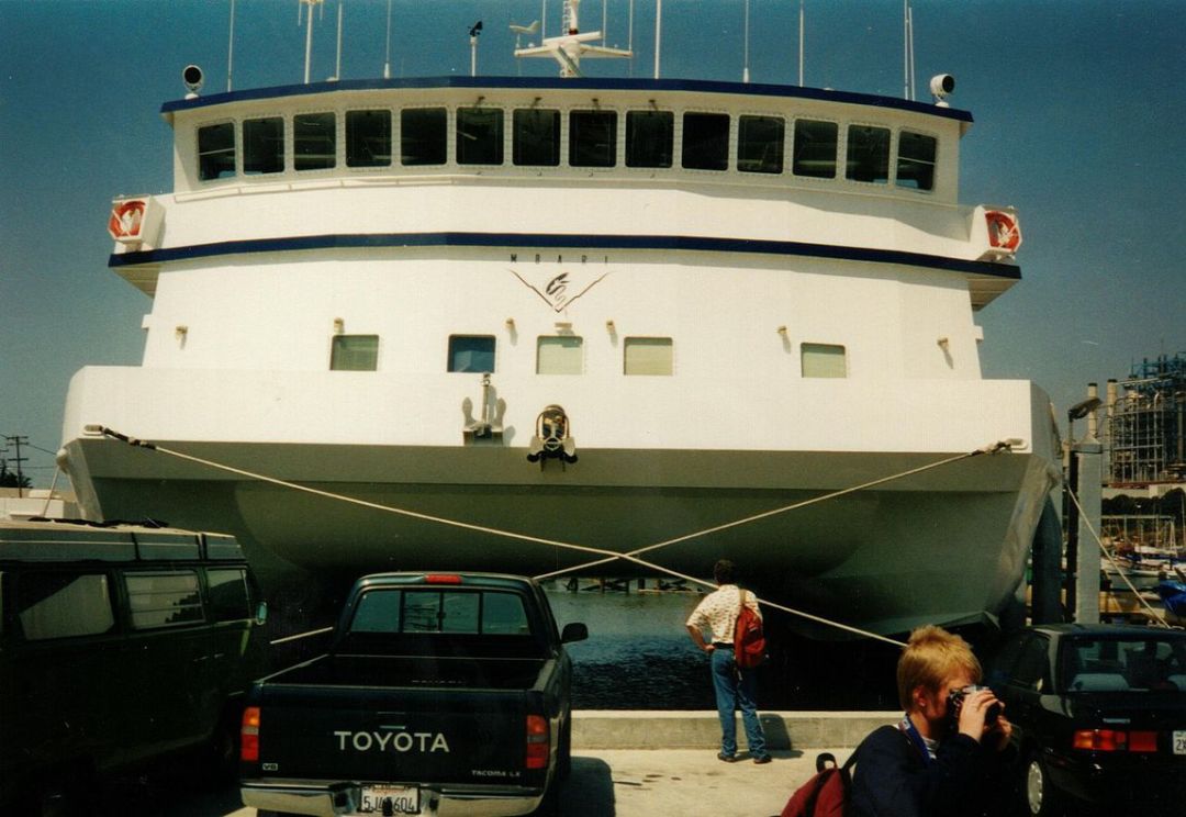 7 j, U5 ]% c; b" o 2015 年,希拉里·斯塔克斯(Hilary Starks )满怀期待地站在 117 英尺高的科考船“西部飞行者号”(Western Flyer)的甲板上,搜寻着加州蒙特雷湾(Monterey Bay)的水域。甲板上的绞盘开始移动,滑轮和线缆慢慢地提起了她等待的东西:一个五英尺(约 0.9 米)长的潜水器,上面挂着装满海水的大塑料瓶。 V# O8 J( m: G9 B0 J/ V( _, A