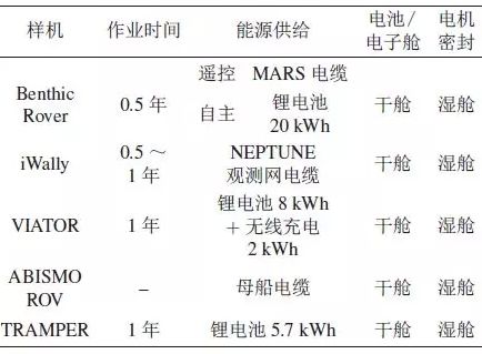 水下无线电能传输对于提升深海小型爬行机器人的作业时间有重要作用,当前的小型化深海爬行机器人的能量供给方式有2种:连接基站供电和自带电池供电,由下表可以看出约70%的小型化深海爬行机器人样机采用了电池供电的方案。为了提高其充电效率和稳定性,可以考虑微细系缆和电池联合供电的方式。 8 g, ^3 b% F' f- v( v8 G