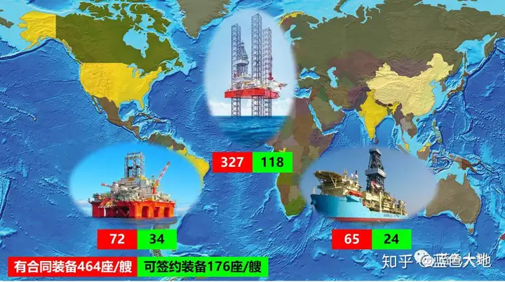% K, g4 b# D2 E8 @4 c 参考OE杂志援引Wood Mackenzie数据,截止2019年10月1日,全球共有可作业钻井装备(仅统计了钻井船、半潜式钻井平台和自升式钻井平台)640座/艘,其中有合同平台464座/艘,无合同平台176座/艘。 / S+ _7 v7 }" c5 z+ V W