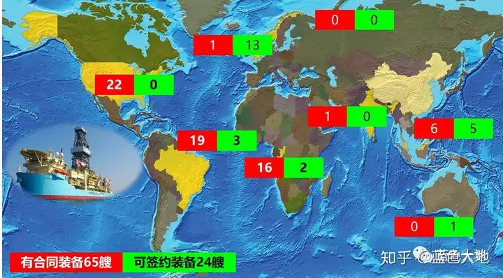 ' ?8 M% z6 X7 |$ R8 [# J 有合同钻井船65艘,无合同钻井船24艘钻井船最大作业海域为墨西哥湾海域、拉美海域和非洲海域闲置钻井船最多的海域为北海海域和东南亚海域 2 q" O% M o5 H7 |7 ], }