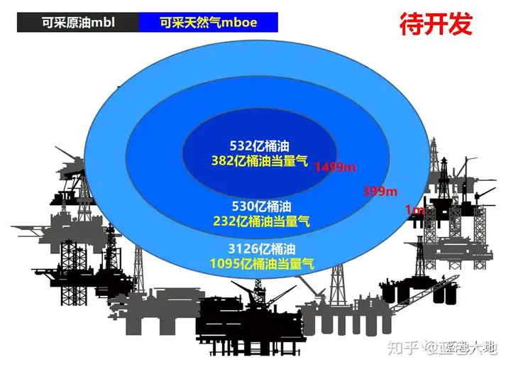 海洋待开发油气田可采储量(2P):石油4200亿桶,天然气1700亿桶油当量