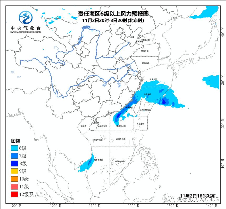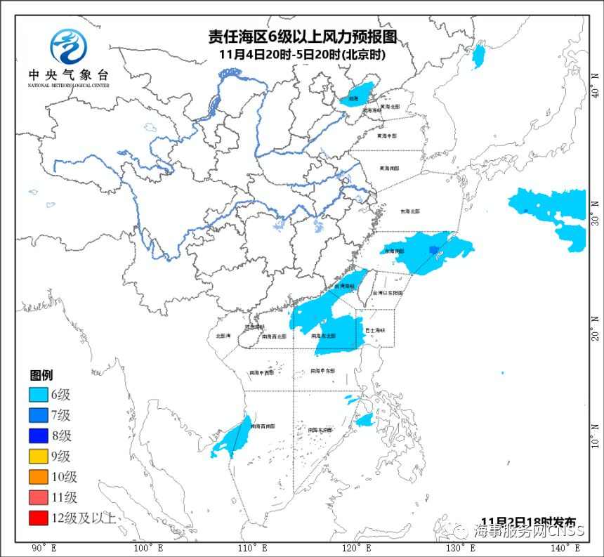 3 T( \0 K r5 x- g 11月2日夜间,南海东北部部分海域将有8级、阵风9~10级的东北风。受大风影响海域航行、作业的船舶,需注意航行安全。 ( ]' B0 p* D- H/ T0 t4 H