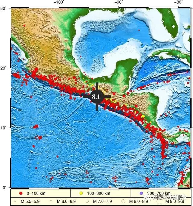今天(9月8日)中午12时49分(北京时间),墨西哥瓦哈卡州沿岸近海海域(15.21°N,93.64°W)发生8.1级地震,震源深度为30.0千米(震级修订)。 " E7 c5 `5 \6 f5 \$ H/ r) `