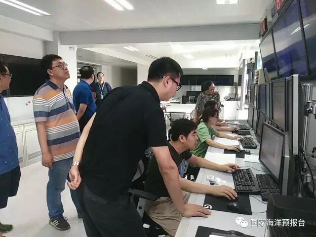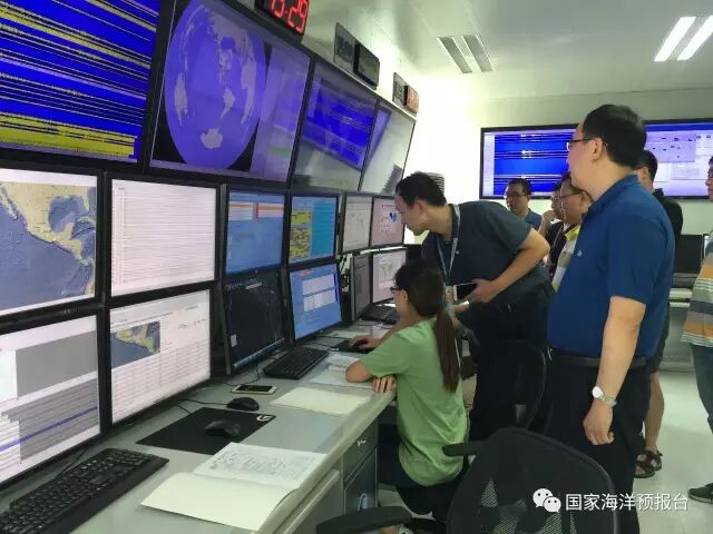 预报员们正进行地震海啸监测预警工作 : R$ s% x7 F) N g1 C7 E