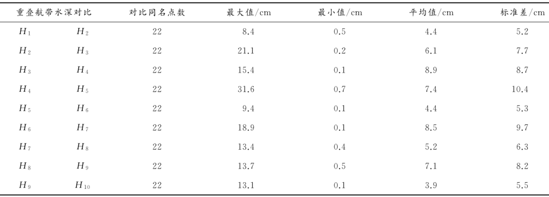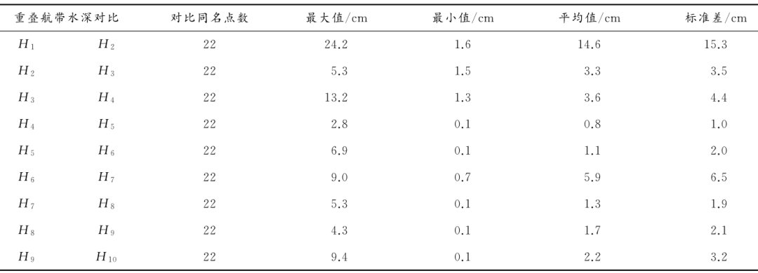 表4 航带重叠区域海底同名点水深误差统计表(海底点云)